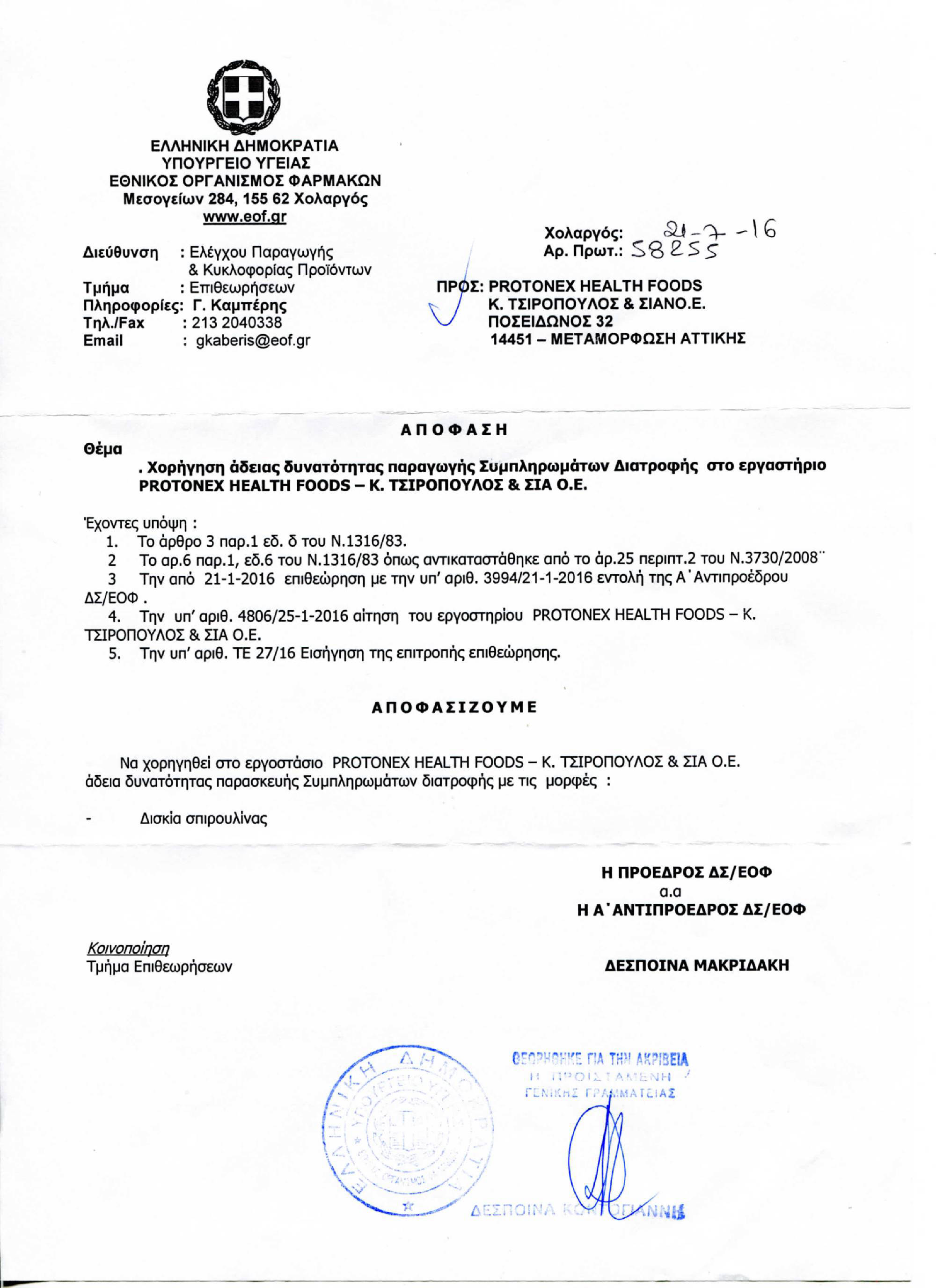 Άδεια Δυνατότητας Παραγωγής & Γνωστοποιήσεις ΕΟΦ